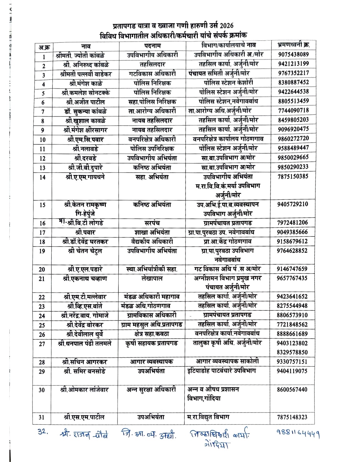 गोंदिया : प्रतापगड येथे दरवर्षीप्रमाणे यावर्षीही महाशिवरात्री निमित्ताने दि. १५ ते २० फेब्रुवारी २०२६ या कालावधीत महाशिवरात्री यात्रा व उस्मान गणी हारुनी ऊर्स मोठ्या उत्साहात आयोजित करण्यात येणार असून या यात्रेसाठी सुमारे तीन ते चार लाख भाविक व यात्रेकरू उपस्थित राहण्याची शक्यता आहे. यात्रेकरूंची वाढती गर्दी लक्षात घेता प्रशासनाने सर्व
